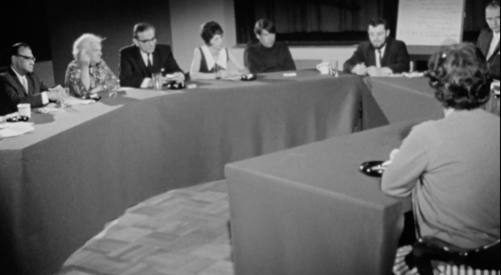 Descriptive Caption: From the 1968 film Little Burgundy, this image shows neighbors meeting to solve problems. It captures the history of people helping each other in our community, which is what LBHF continues with the ‘Home Base’ program.